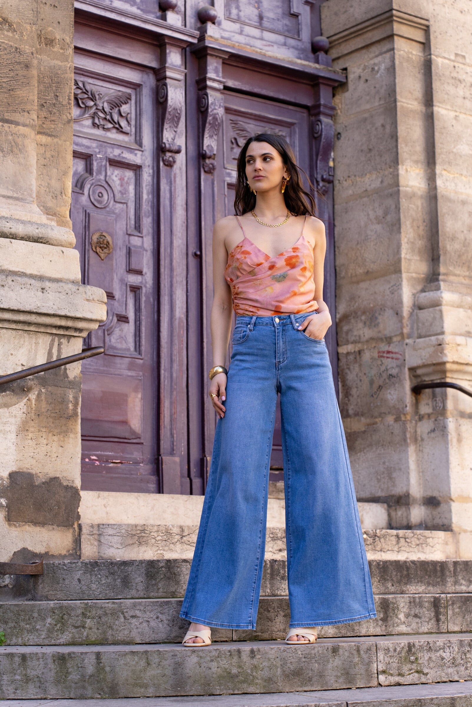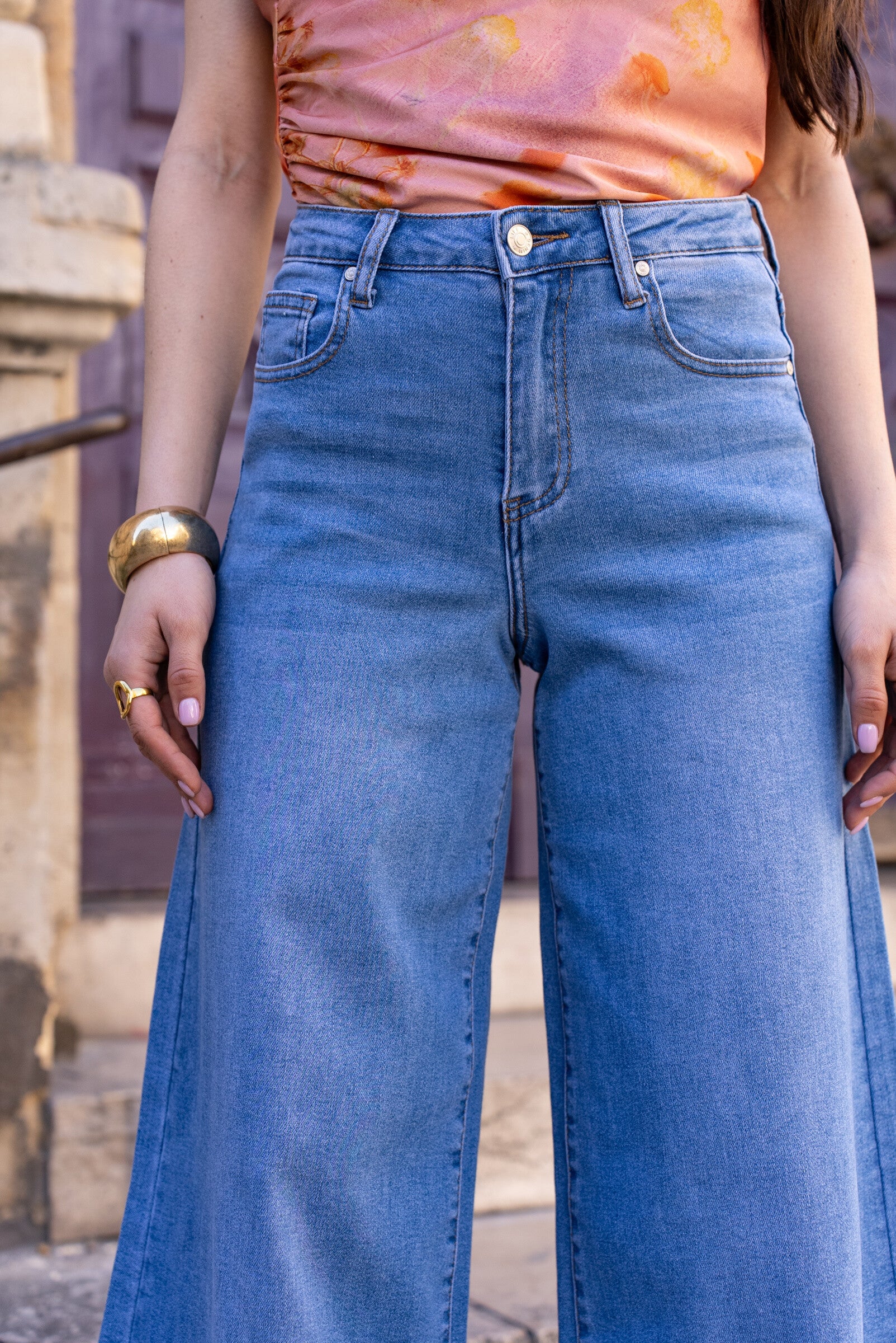 A premium stretch palazzo jean engineered for a high-waist, wide-leg silhouette that drapes fluidly and flatters the figure. Constructed from durable stretch denim with a cotton-rich composition and elastane for controlled recovery, it offers day-long comfort and shape retention. Tailored details include a secure zip-and-button closure, reinforced seams and a roomy leg opening for elegant movement and versatile styling across spring/summer wardrobes. Precision sizing, machine-wash care and quality stitching ensure consistent fit and durability suitable for both retail and wholesale. Order now to secure stock and benefit from prompt fulfilment and bulk-pricing options.