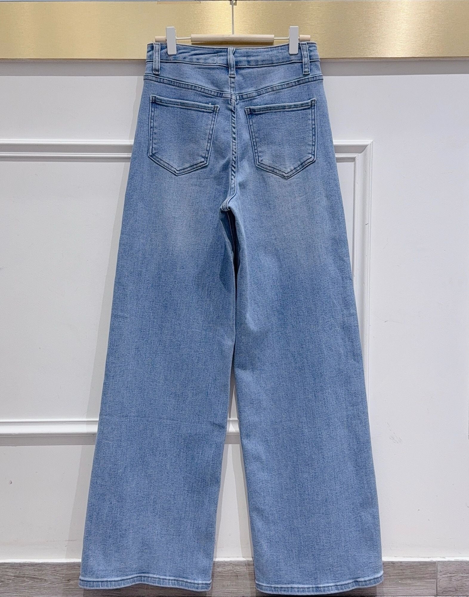 Crafted from a stretch denim blend, these high-waist jeans combine structure with freedom of movement for a flattering silhouette. The super wide leg and couture pearl embellishments on the front create a refined, fashion-forward look while reinforced seams ensure lasting wear. Front zip and button closure provide secure fit and a clean finish; the concealed mens' side detail adds subtle tailoring. Easy-care composition and precise tailoring make these jeans suitable for seasonal wardrobes such as spring/summer and autumn/winter; professional laundering is recommended for pearls. Place your order now to secure a statement piece backed by meticulous construction and quality materials.