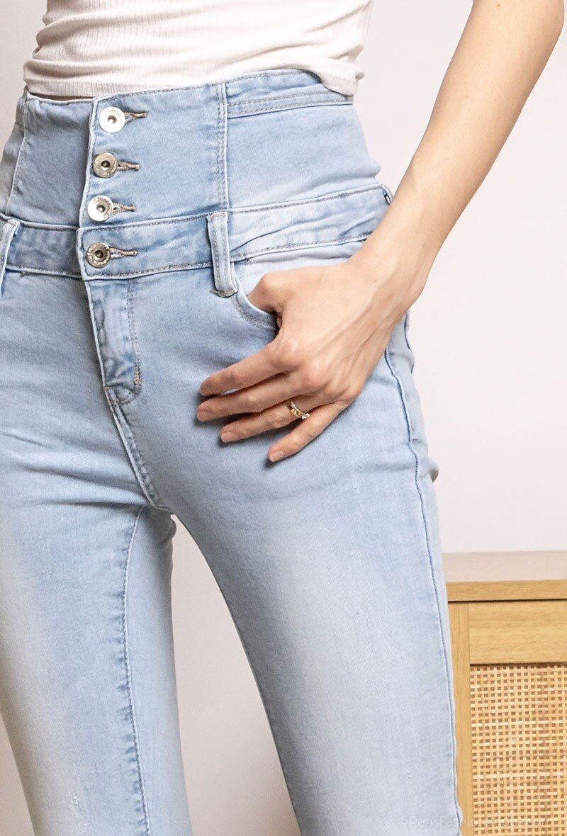 High-waisted stretch denim engineered to sculpt the waist and deliver a streamlined, flattering silhouette. Premium cotton-blend fabric provides durable structure with controlled elasticity for comfort and reliable shape retention. Tailored slim leg, classic rise and reinforced five-pocket construction ensure versatile styling and everyday wearability. Precision stitching, secure zip-fly with button fastening and careful finishing reflect quality manufacturing standards. Available in core denim shades and a range of sizes, this jean pairs effortlessly with tailored outfits or casual tops; order now to access wholesale pricing and secure stock.