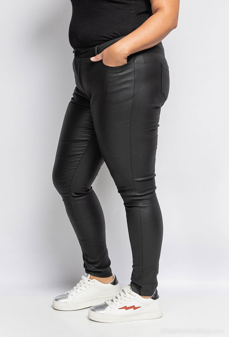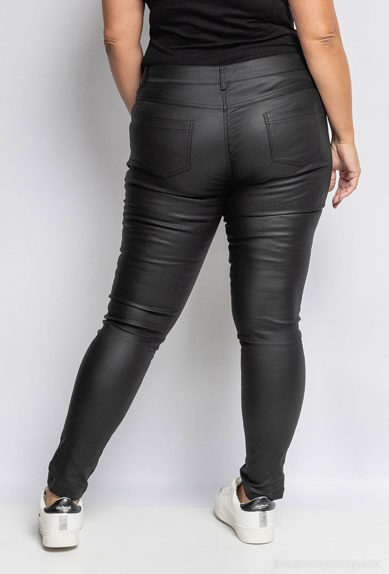 Crafted from soft, high-density faux leather with a cotton-elastane backing, these trousers deliver a smooth finish, structured shape and comfortable everyday wear. The high waist and tapered leg create a flattering silhouette suitable for smart and casual styling across autumn/winter wardrobes. Reinforced stitching, a concealed zip fastening and practical pockets ensure durability and functionality for frequent wear. The fabric blend offers gentle stretch and straightforward care: wipe clean or gentle machine wash inside out when required. Order now to secure your preferred size with tracked shipping and dependable customer support.